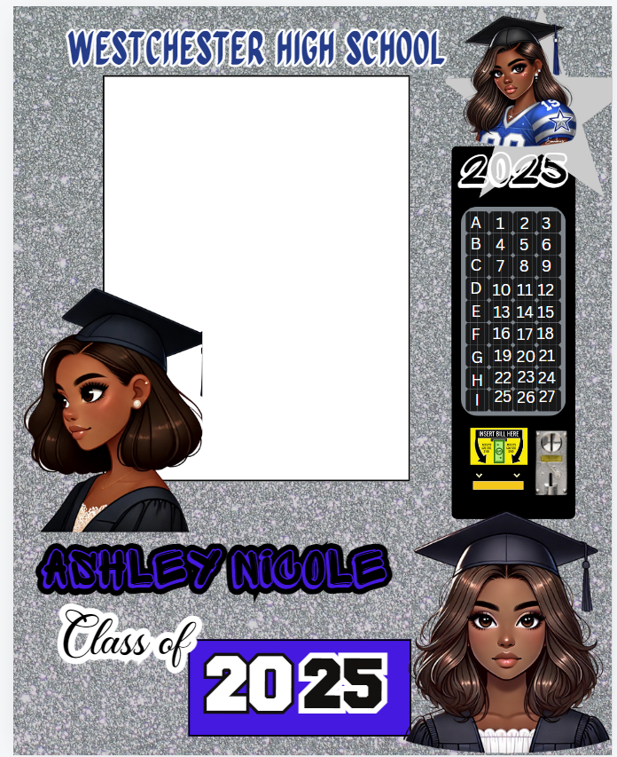 Celebrate special moments with our Graduation Vending Machine Gift Box Template, designed by Chareese's Pieces. This 16x20 inch digital template is perfect for football fans and can be customized for any occasion. Featuring a creative vending machine design, it includes customizable slots for small gifts, snacks, or personalized tokens.