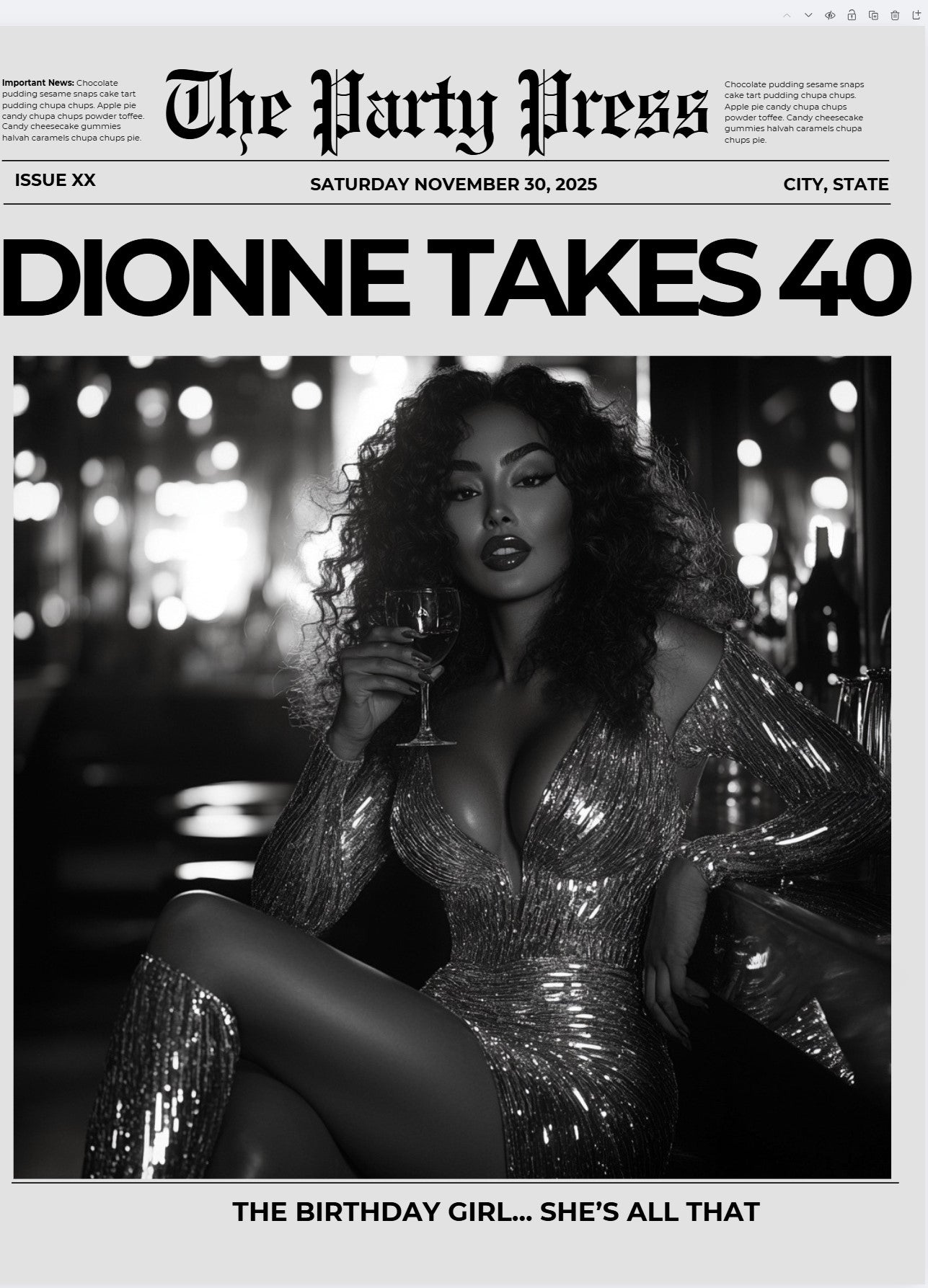 Optional Sections: Add “articles” featuring fun tidbits like recipes, party tips, or funny anecdotes about the guest of honor.