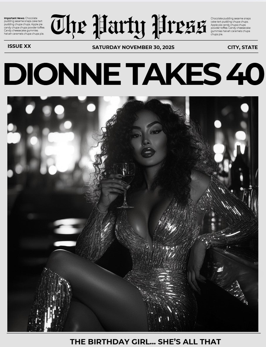 Editable Birthday Newspaper Template Invitation – Personalized Black & White Design for Adults – Canva Template