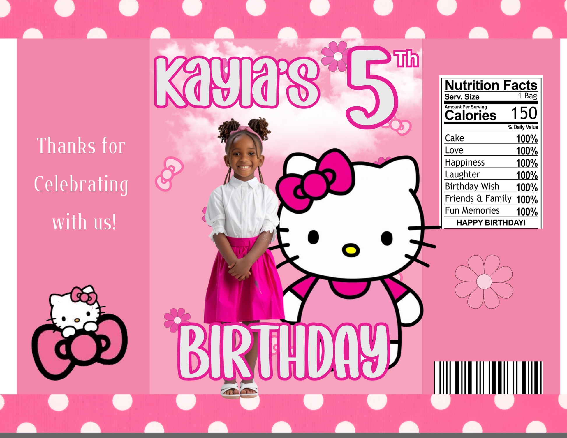Hello Kitty Potato Chip Bag Digital Template - Customizable Birthday Party Favor - Instant Download