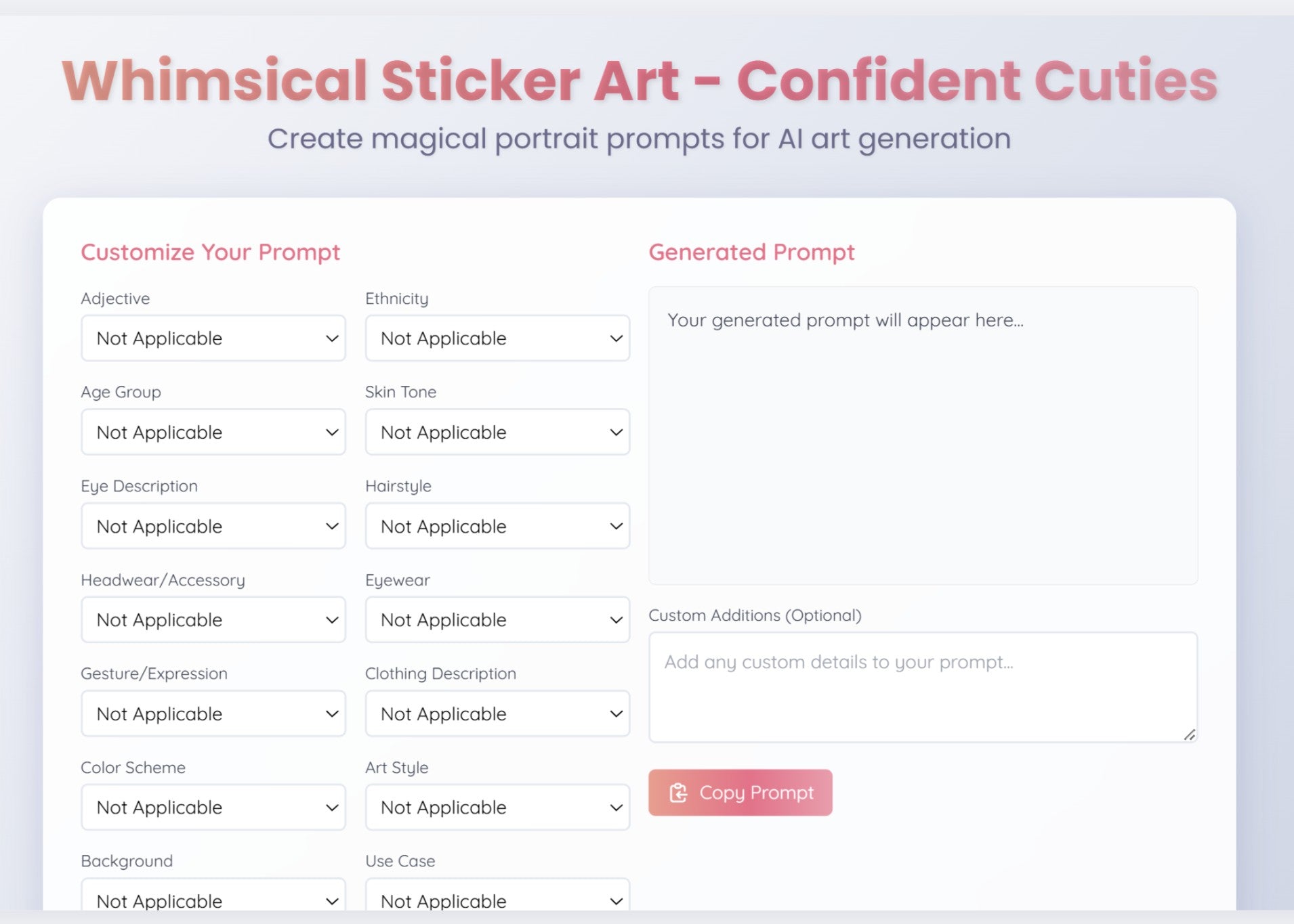 Whimsical Sticker Art for Confident Cuties™ – AI Prompt Generator